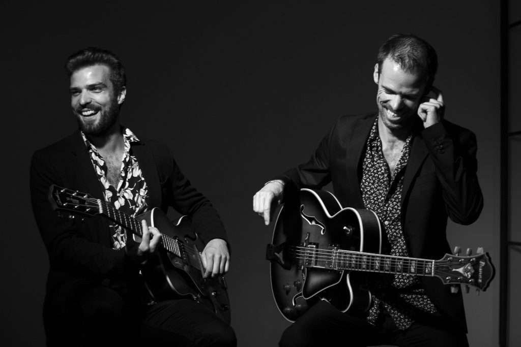 Bruno e André Santos têm vindo a tornar sério aquilo que começou em jeito de brincadeira lá por casa e que resulta agora no terceiro trabalho discográfico, para o qual os manos compuseram e fizeram arranjos, explorando as inúmeras possibilidades que um duo de guitarras pode, à partida, não parecer oferecer, acrescentando-lhe ainda dois instrumentos tradicionais da sua Ilha da Madeira, Braguinha e Rajão. Ao vivo, para além de uma cumplicidade musical e pessoal muito bonita, Bruno e André juntam elegância, virtuosismo e algum humor a uma viagem musical com um cenário que remete para a sala de estar onde tudo começou. Os manos recebem assim o público em sua ‘casa’ e conversam, contextualizando e explicando a origem e o porquê de cada uma das canções que tocam.