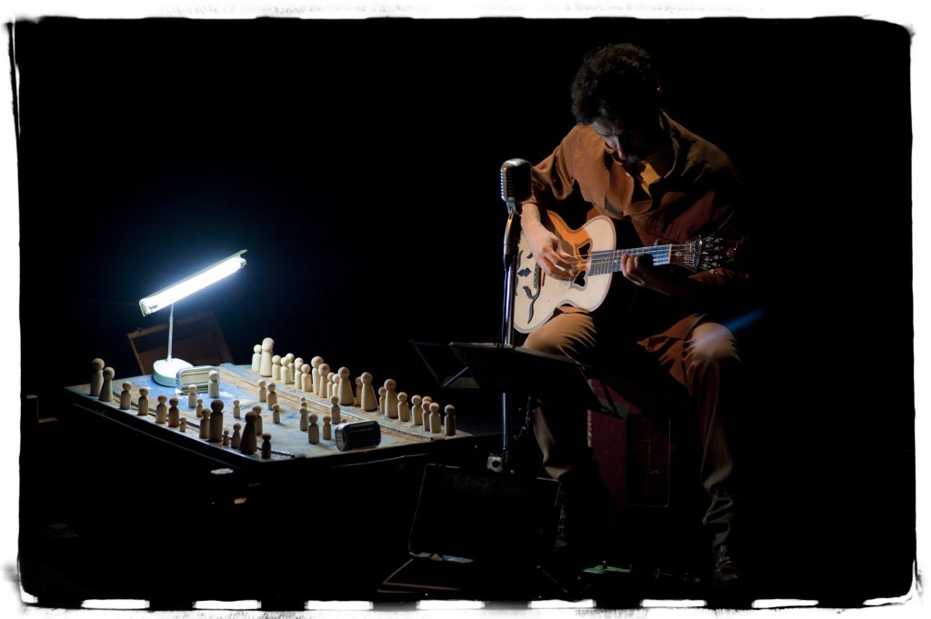 Criado a partir de textos originais, poesia oral de mulheres afegãs, um poema de Eduardo Galeano, músicas e sonoridades de várias culturas de África e do Médio Oriente, desenhos de crianças de Darfur e outros materiais plásticos, procura fazer uma reflexão sobre os conceitos de território e fronteira, de pertença e de liberdade, com especial enfoque no universo infantil. Para este projeto foram criados vários instrumentos musicais a partir de objetos e materiais simbólicos como a Harpa Farpada (uma janela-harpa feita com arame farpado), o Remo (cordofone criado a partir do objeto que lhe dá o nome), um jogo de piões que nos transporta para um campo de batalha e caldeiros de metal suspensos de onde surge uma tempestade marítima.