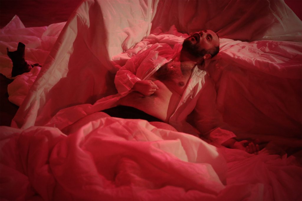 Morrer no Teatro é um quase-monólogo sobre a morte e o teatro. Partindo de uma premissa comum ao imaginário do cinema-catástrofe – um grupo isolado de sobreviventes que devem construir um novo modelo de sociedade – um ator narra o futuro que nos espera se ficarmos presos aqui, nesta sala de espetáculos. Uma narrativa que costura descrições de velórios, receitas antropofágicas, orgasmos transcendentais e uma fina seleção de excertos da dramaturgia universal.
