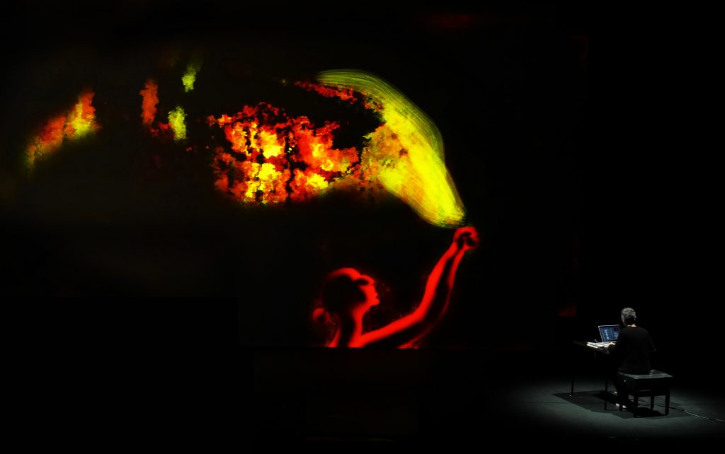 Trabalhando em articulação com os estímulos sonoros, o artista desenha com o auxílio de mesa e caneta digitalizadora e uma versão do software Photoshop configurada por si para uso performativo. Sem recurso a material pré-gravado respondendo a estímulos sensoriais do momento, os desenhos privilegiam uma dinâmica analógica própria de um ato performativo. As imagens, em permanente metamorfose, habitam o espaço ora como suas personagens ora como cenografias mutantes.