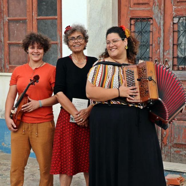 “Vai de centro ao centro” é um encontro em roda, onde se partilham contos, cantigas e memórias. A sessão é construída a partir de repertório de tradição oral e serve como convite à partilha das expressões do imaterial ainda ativa na memória dos presentes. Celina da Piedade, Ana Santos e Cristina Taquelim entrarão na dança para religar o tempo e as comunidades.
